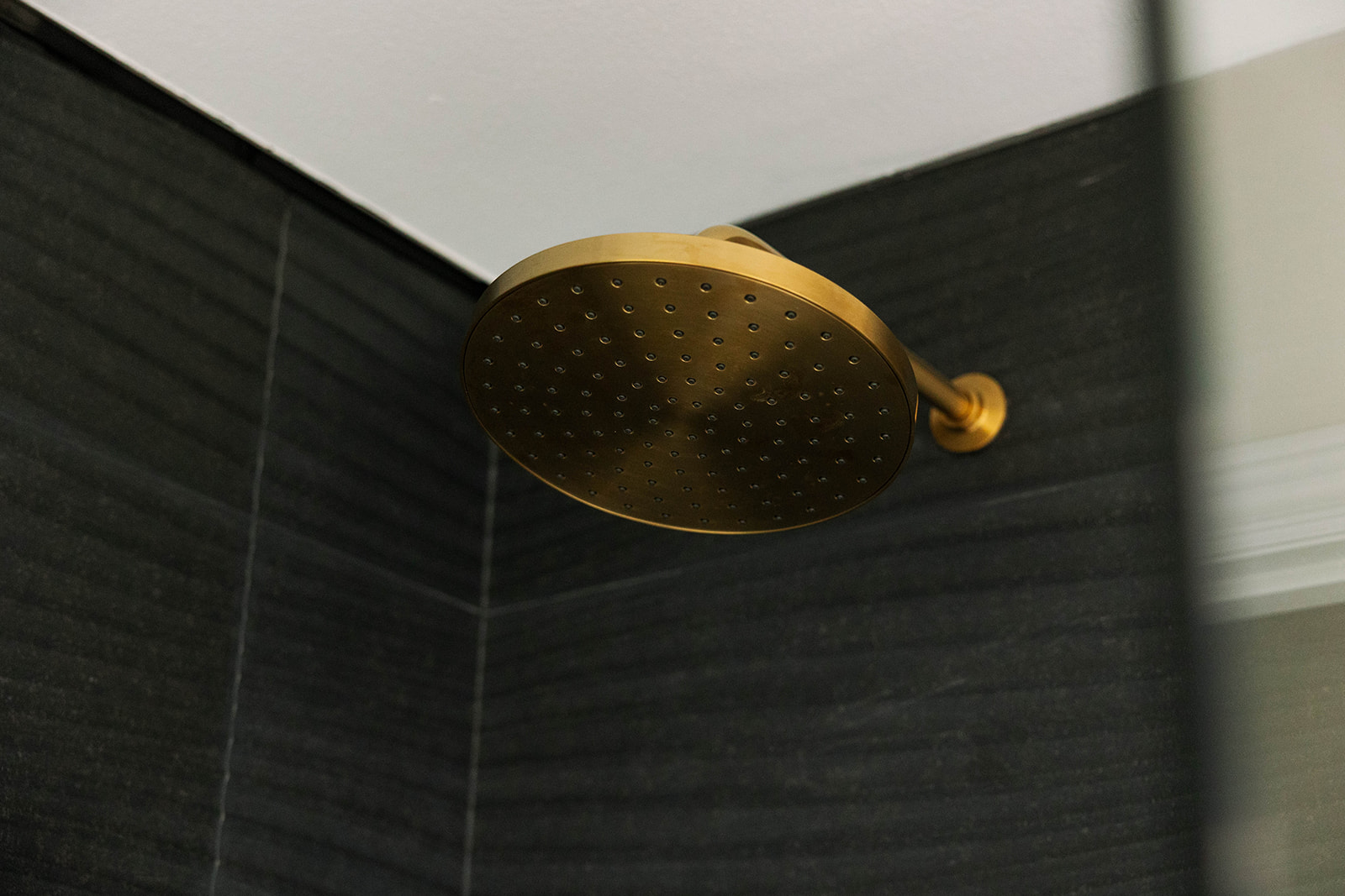 This Bellevue dual bathroom remodel shows a complete bathroom transformation that merges modern elegance with spa-inspired comfort. Both bathrooms were remodeled simultaneously to create a cohesive aesthetic. From gold fixtures to sculptural elements and statement tilework, every detail was intentionally chosen to elevate the everyday routine.